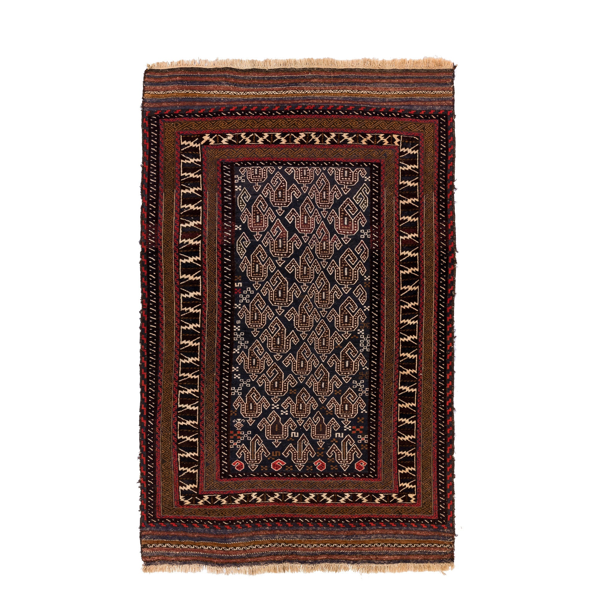 SKU: 13457Size: (5.1 x 7.5)ft ~ (1.55 x 2.29)mArea: 38.2 sqft ~ 3.55 sqmtOrigin: AfghanistanPeriod: Mid-20th CenturyManufacturing: Hand WovenMaterial (Warp/Weft): Cotton/Wool Handmade by...
