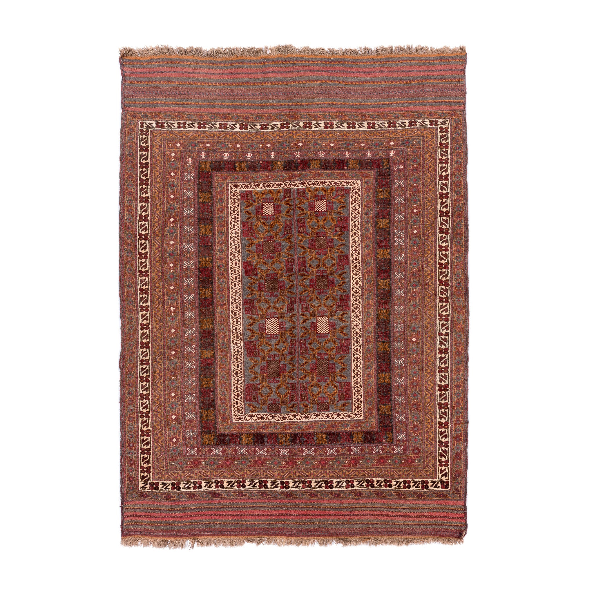 SKU: 42502Size: (5.8 x 8)ft ~ (1.78 x 2.44)mArea: 46.8 sqft ~ 4.34 sqmtOrigin: AfghanistanPeriod: Mid-20th CenturyManufacturing: Hand WovenMaterial (Warp/Weft): Cotton/Wool Handmade by...