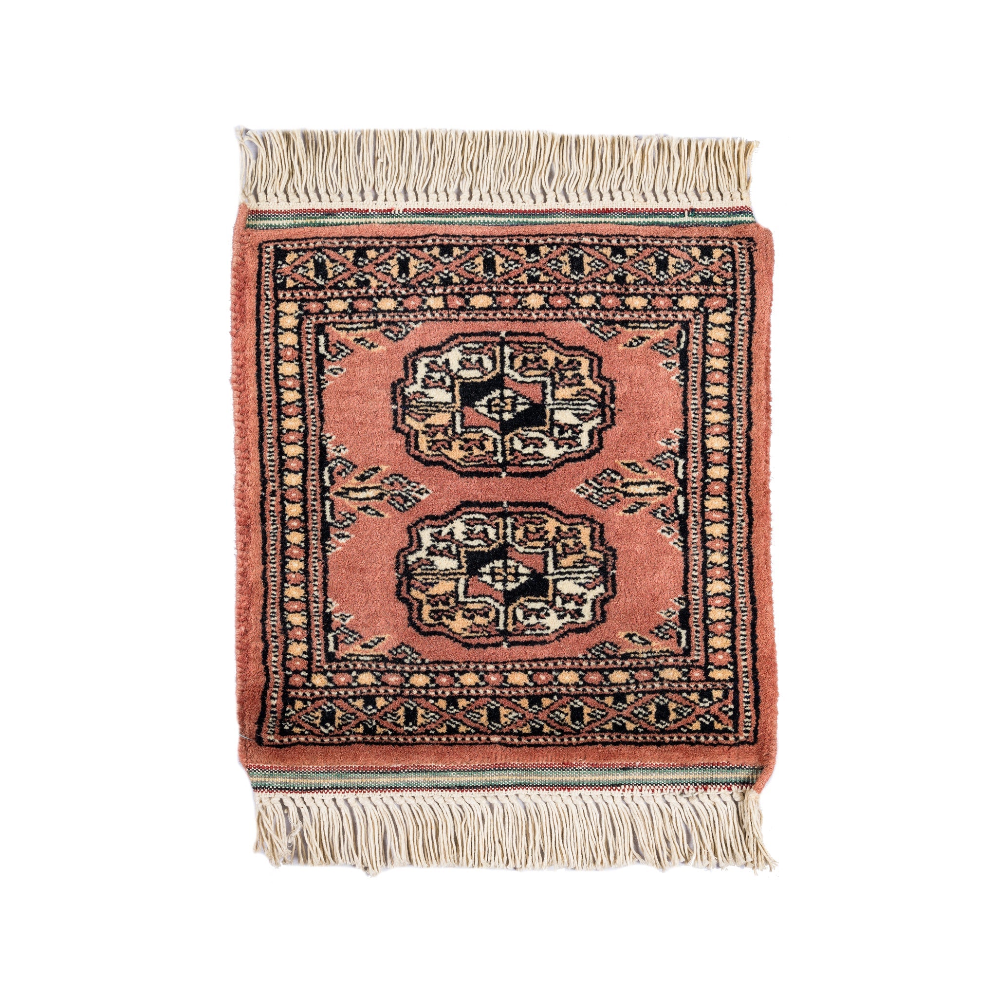 SKU: 69322Size: (1 x 1)ft ~ (0.29 x 0.3)mArea: 0.9 sqft ~ 0.09 sqmtOrigin: PakistanPeriod: Mid-20th CenturyManufacturing: Hand WovenMaterial (Warp/Weft): Cotton/Wool Carpet table...